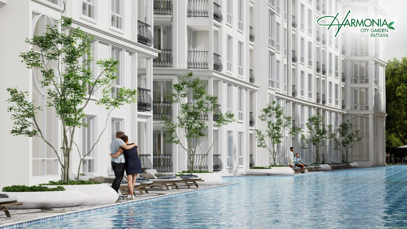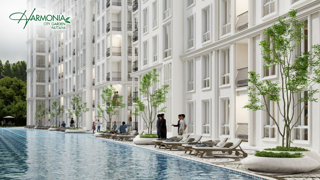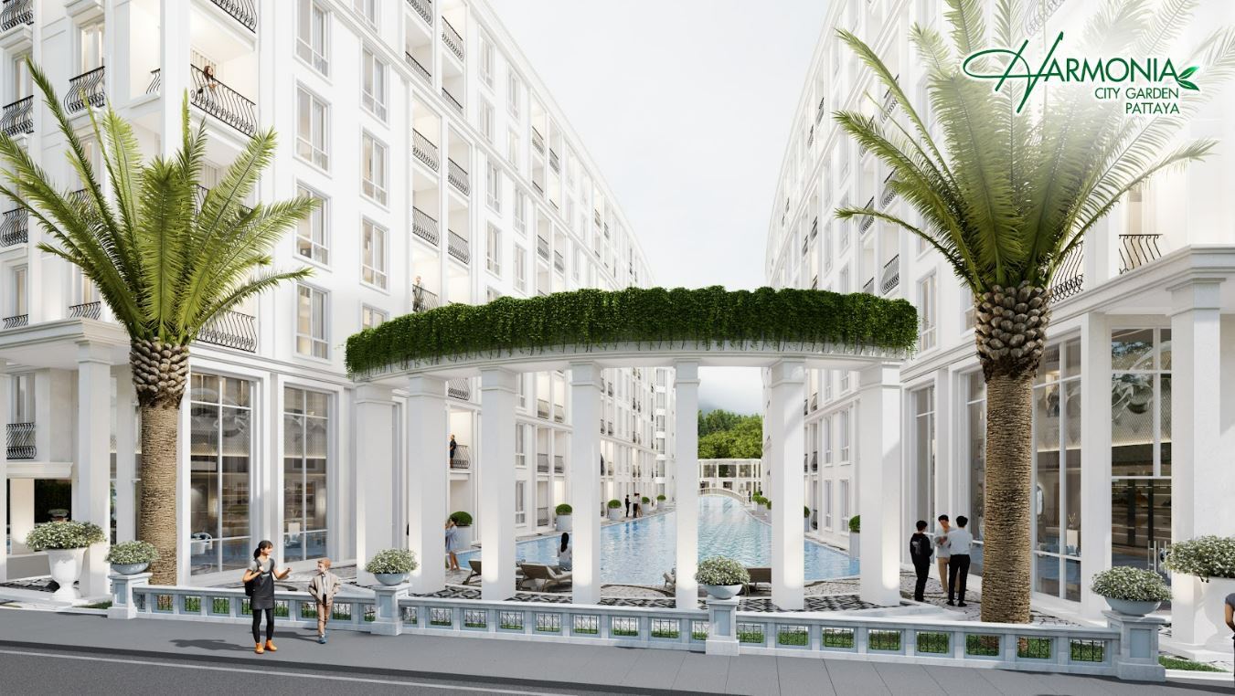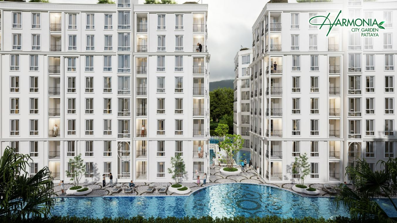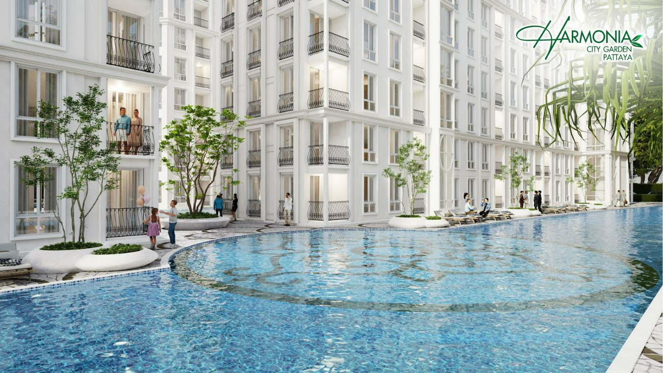 Harmonia City Garden is one of those projects that tries to find a balance. Right in the center of Pattaya - but without that constant sense of noise and movement around you. Not isolated, just… slightly set back from it.