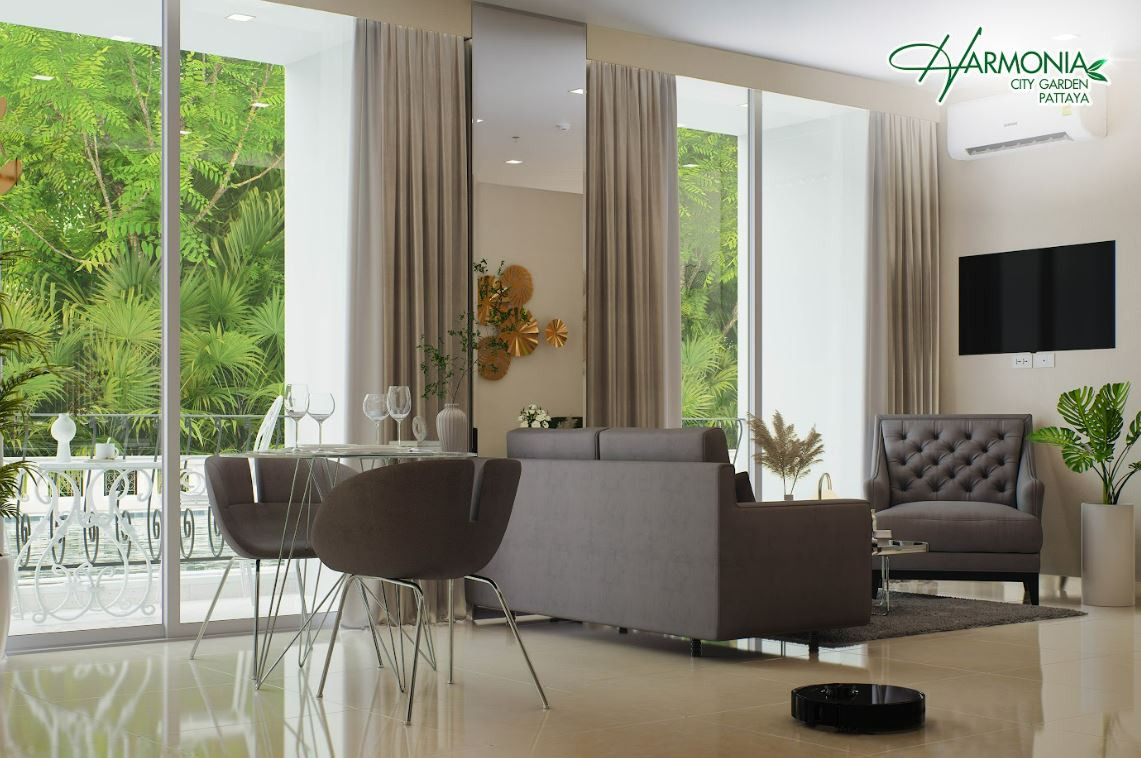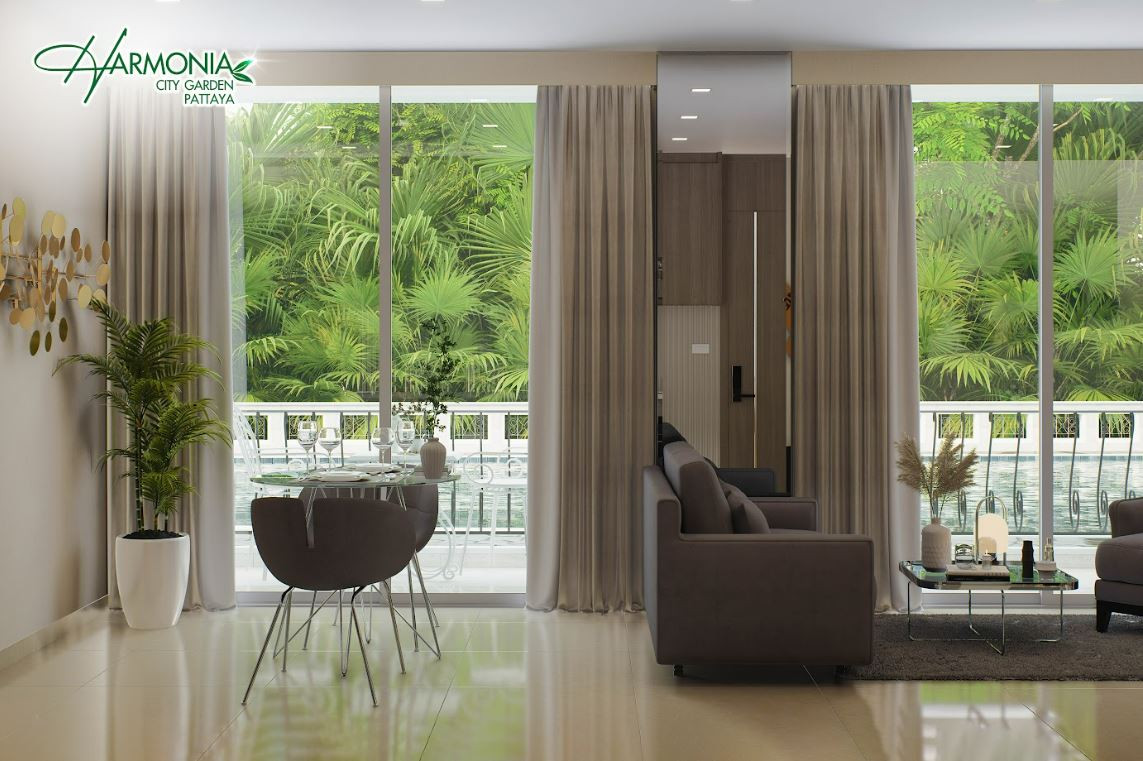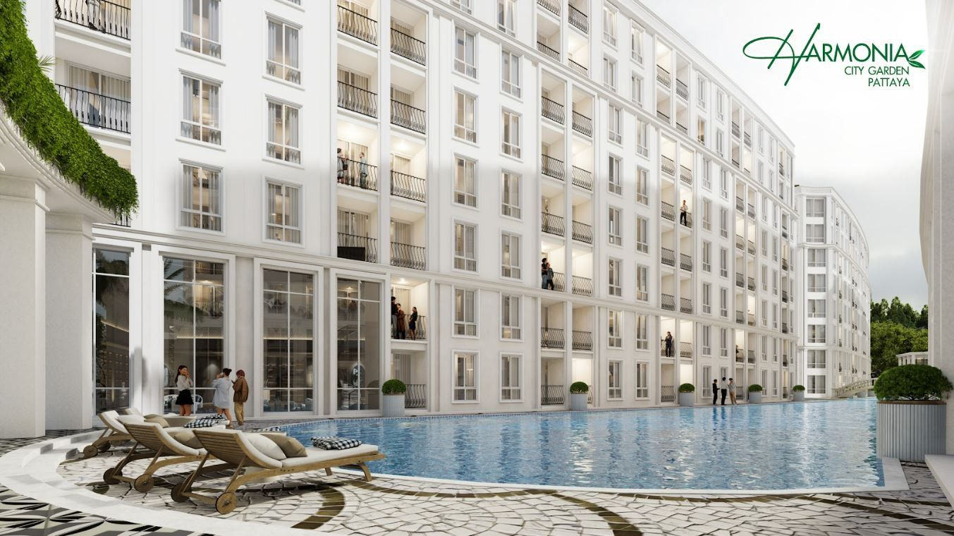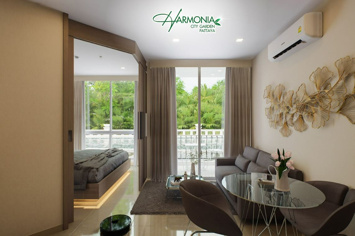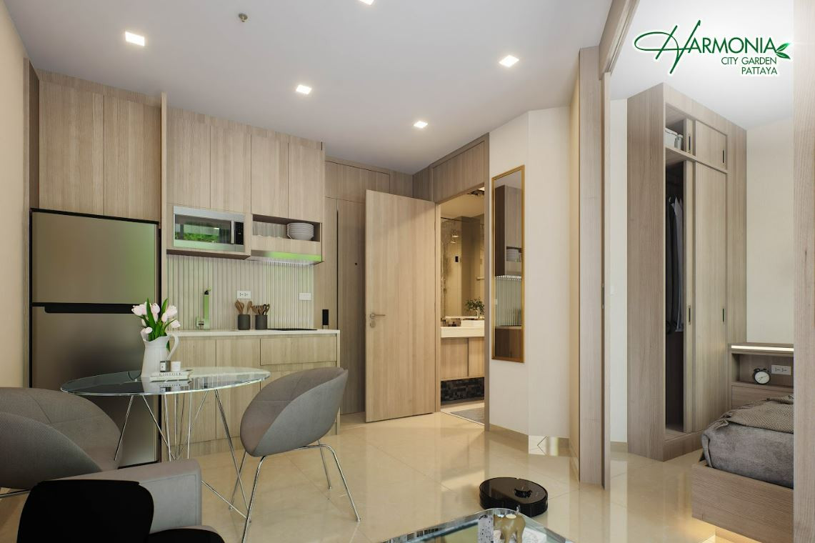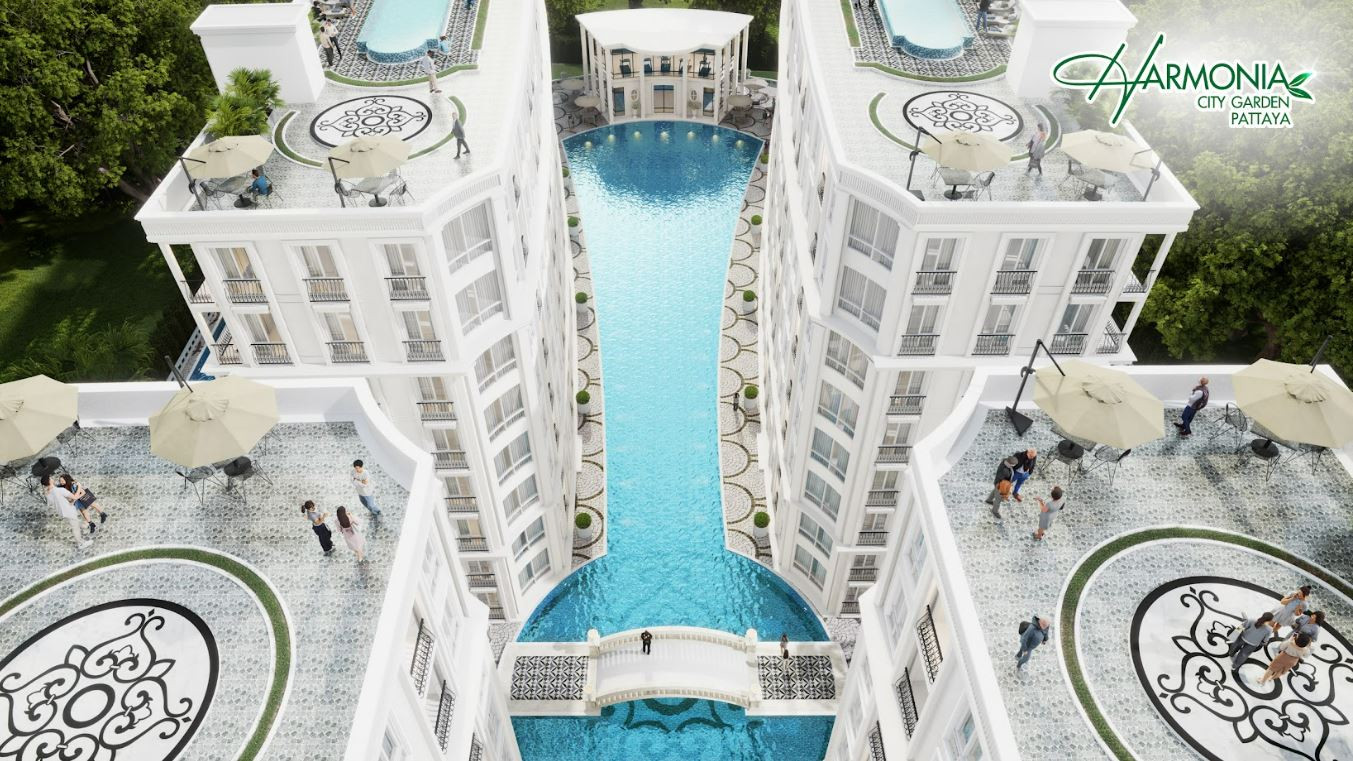 Harmonia City Garden is one of those projects that tries to find a balance. Right in the center of Pattaya - but without that constant sense of noise and movement around you. Not isolated, just… slightly set back from it.